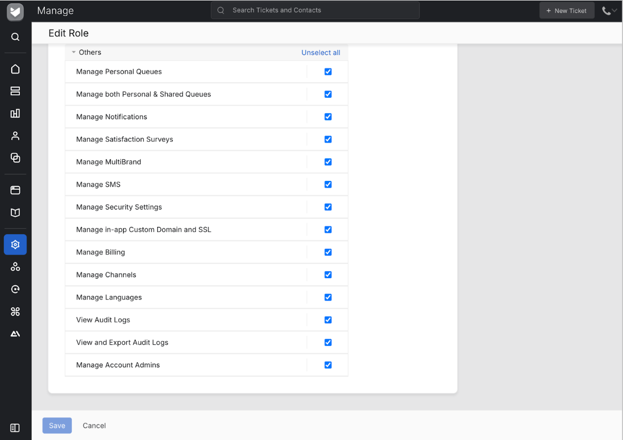 - Locate the Manage Account Admin permission and enable it