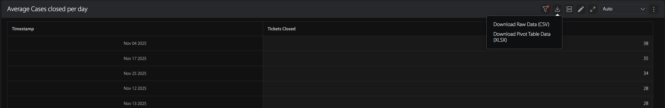 Once you have saved your Pivot Table in the report, you have the option to Download the Pivot Table data as an XLSX file by following the steps below: