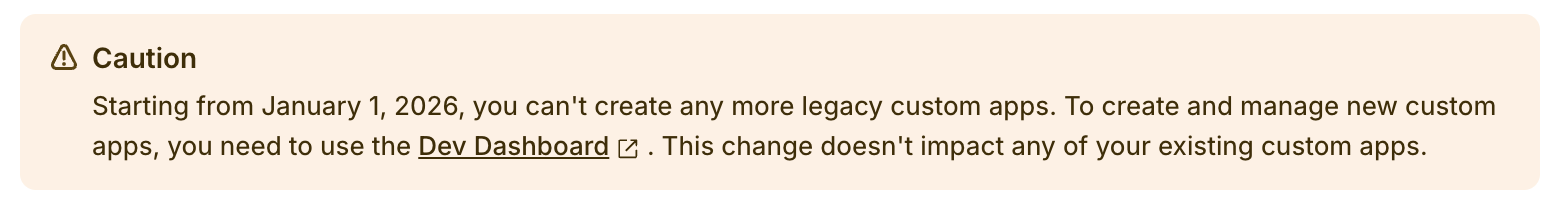 Shopify no longer allows the creation of legacy custom apps.