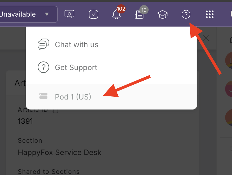 This feature is available for all US hosted accounts and on plans offered by HappyFox. To know your hosting location, click the ? icon at the top right corner on your agent profile.