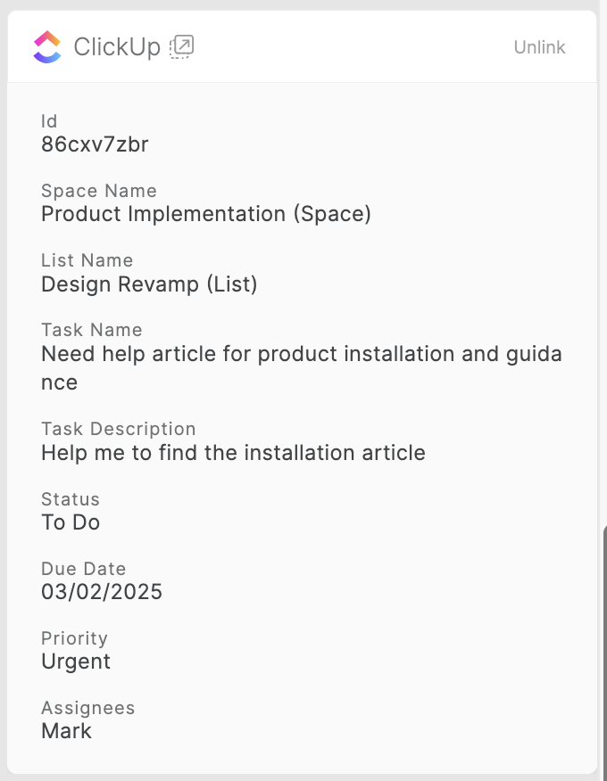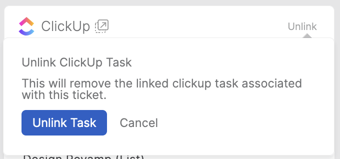To unlink a ClickUp task from a HappyFox Helpdesk ticket: