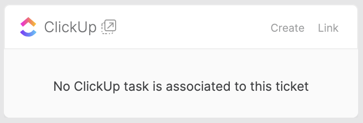 In the right pane, under the ClickUp section, you will see the placeholder message: "No ClickUp task is associated with this ticket.