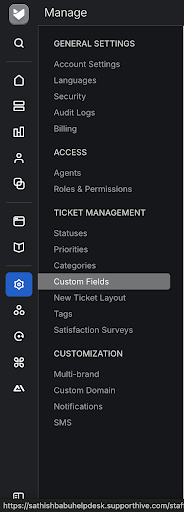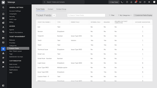 Agents with the Manage Ticket Custom Fields permission can create and manage ticket custom fields.
