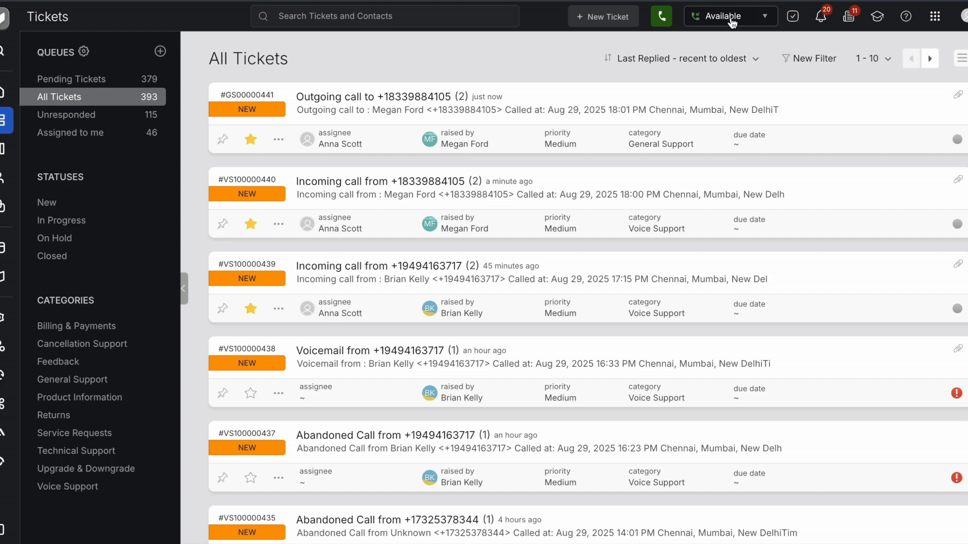 Note: This toggle allows you to control your call availability without affecting access to tickets or other workflows.
