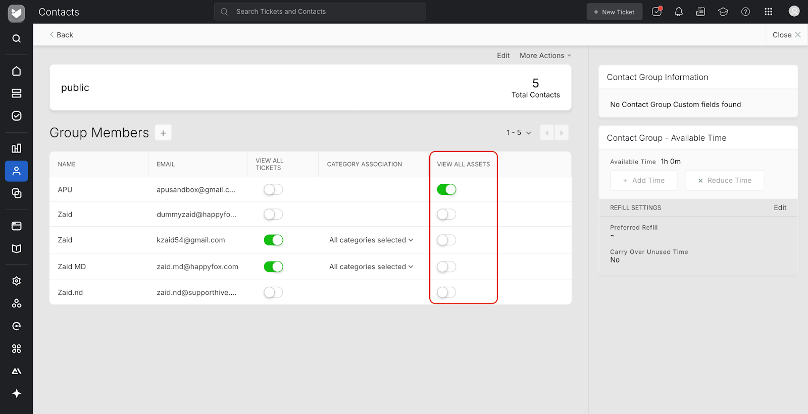 Admins/Managers can designate one or more contacts within the group who are authorized to view all assets linked to that contact group. These selected contacts can then raise tickets on behalf of others in the same group.