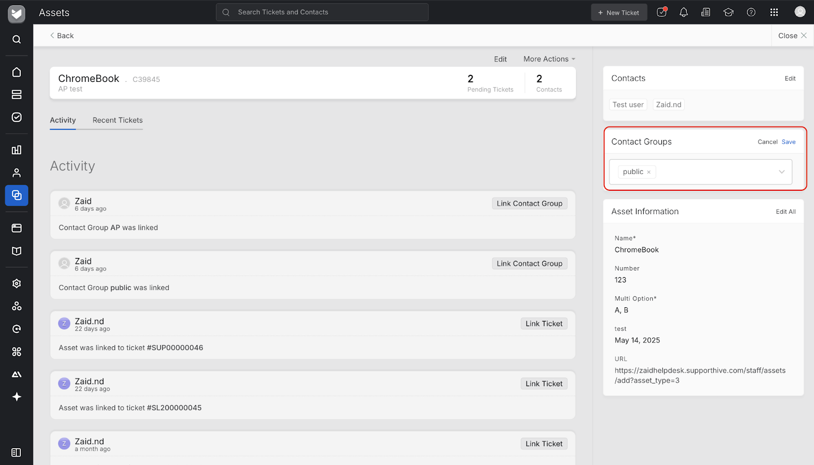 While creating or editing an asset, you’ll now find a new field — Contact Groups — under the asset details section.