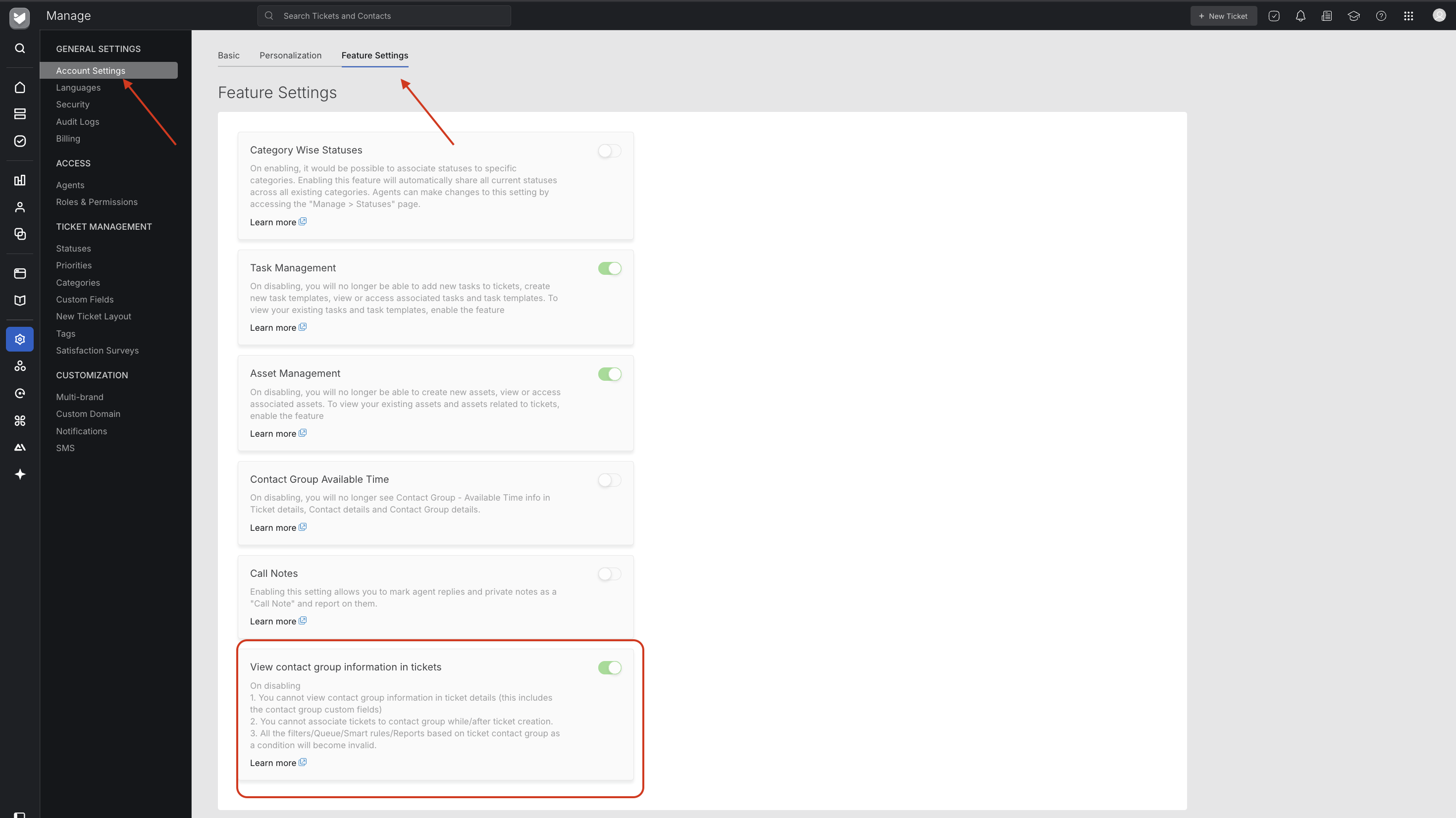 - View Contact Group Information in Tickets - Located under Account Settings → Feature Settings