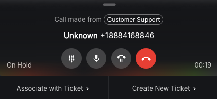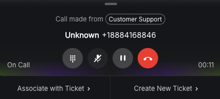 During a call, agents have full control over the conversation using in-call controls. This includes the ability to mute/unmute yourself and hold/resume the call, ensuring better handling of sensitive or internal moments during a conversation.