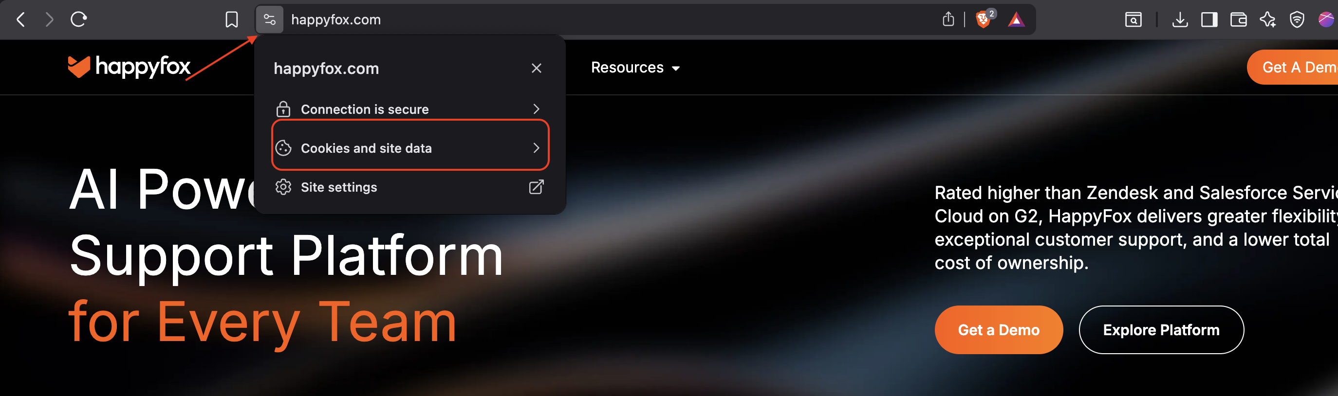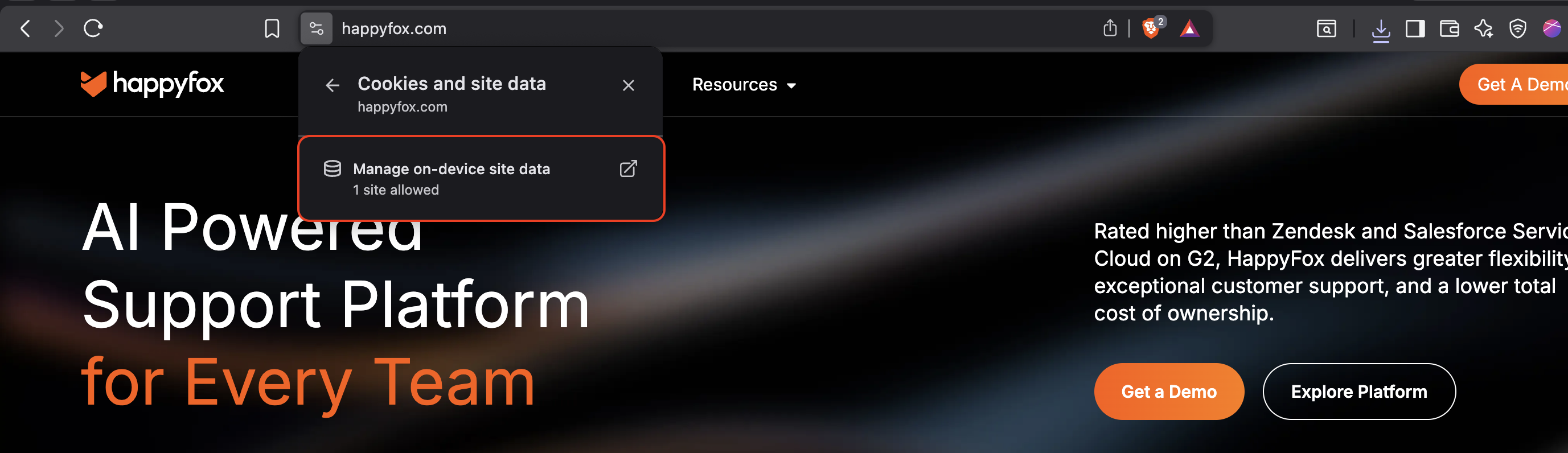 7. Allow Cookies for realtime.happyfox.com (for accounts using Custom Domain to access the agent portal)