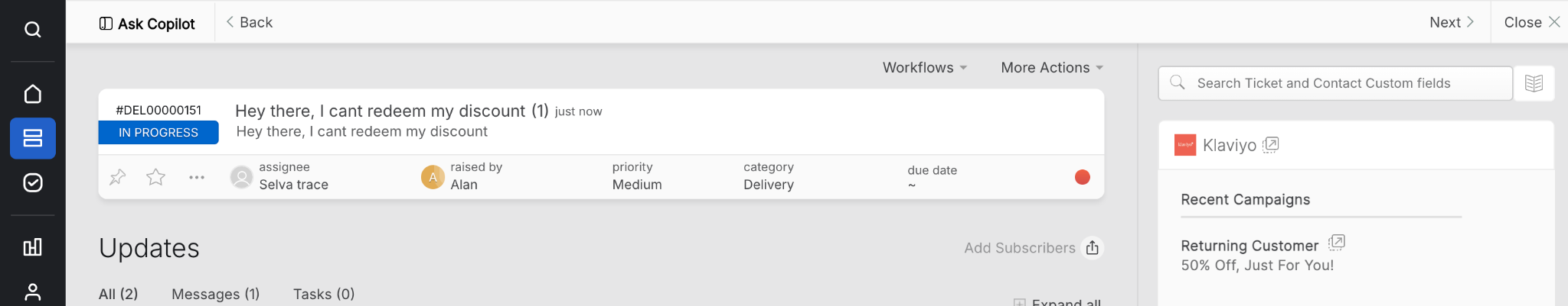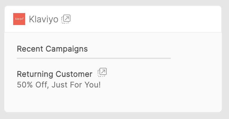 ✓ View all Klaviyo campaigns associated with the ticket contact.