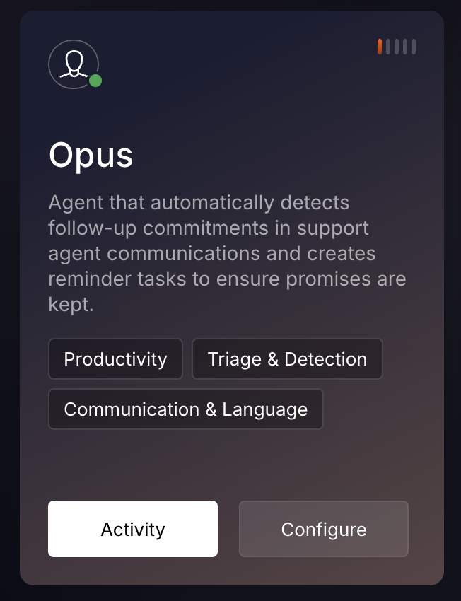 This gives you the flexibility to pause an agent’s operations when needed and resume them later without losing any configurations.