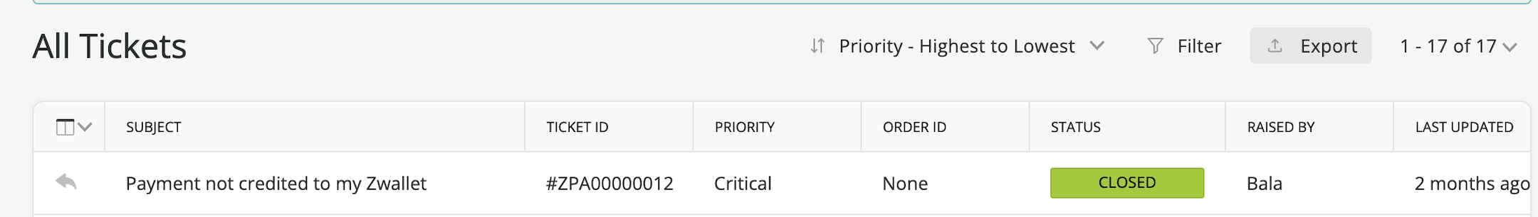 - If more than 1000 tickets match the applied filters, the contact will be prompted to narrow the results or export with subsequent filters