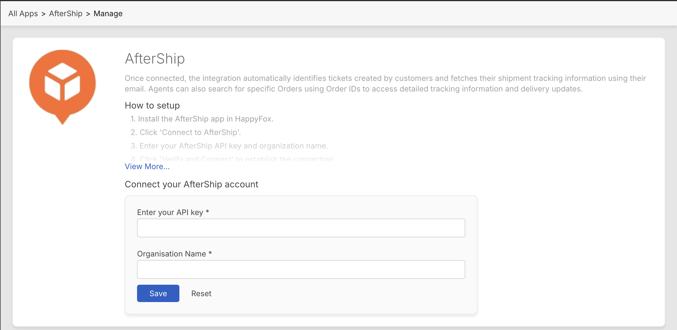 There are two steps required to configure the AfterShip integration with HappyFox.
