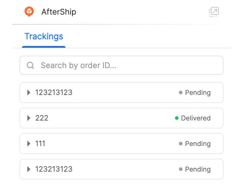 Each shipment’s tracking appears as a collapsible window that can be expanded to view detailed tracking information.