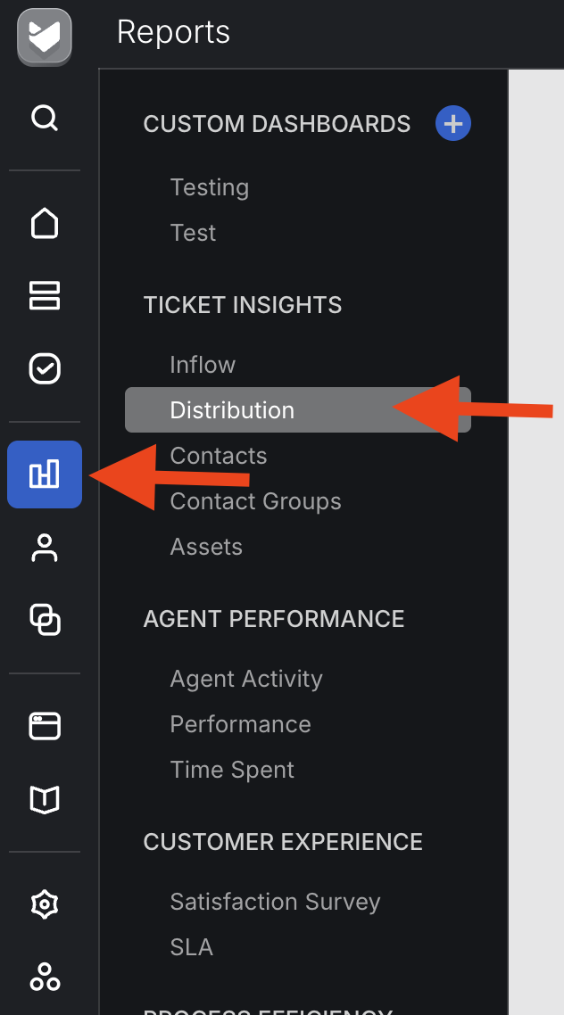 Monitor the real-time distribution of key ticket properties such as status, priority, category, and assignee for tickets created or updated during the specified time period using HappyFox's Distribution Report.